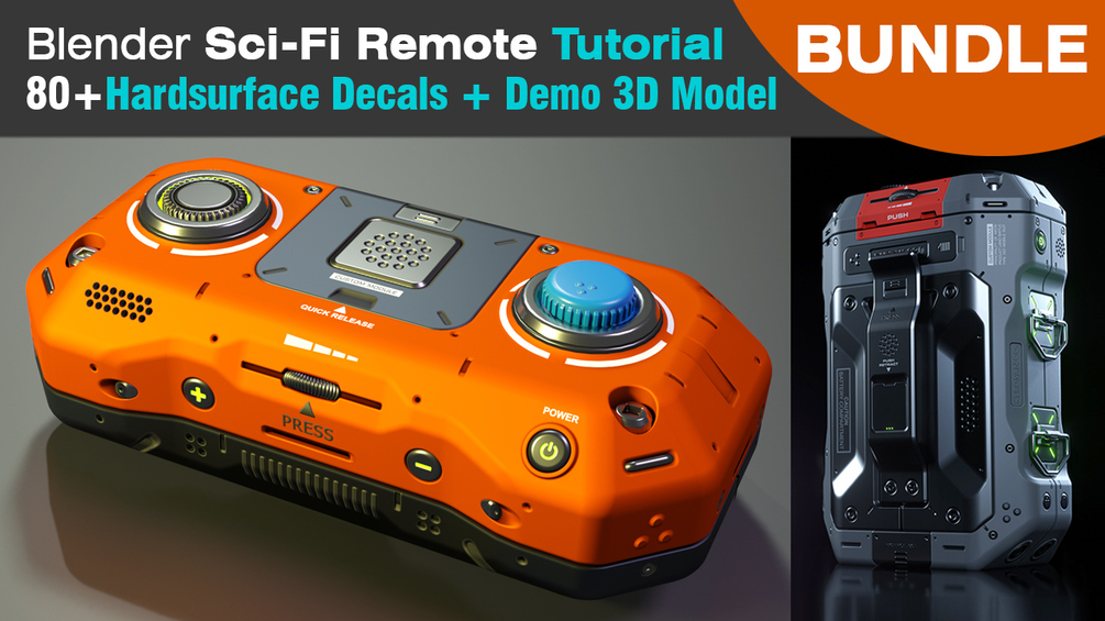 Blender Sci-Fi Remote Tutorial + Decals Pack Bundle